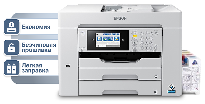 Для Epson WorkForce EC-C7000 доступна бесчиповая прошивка, которая: