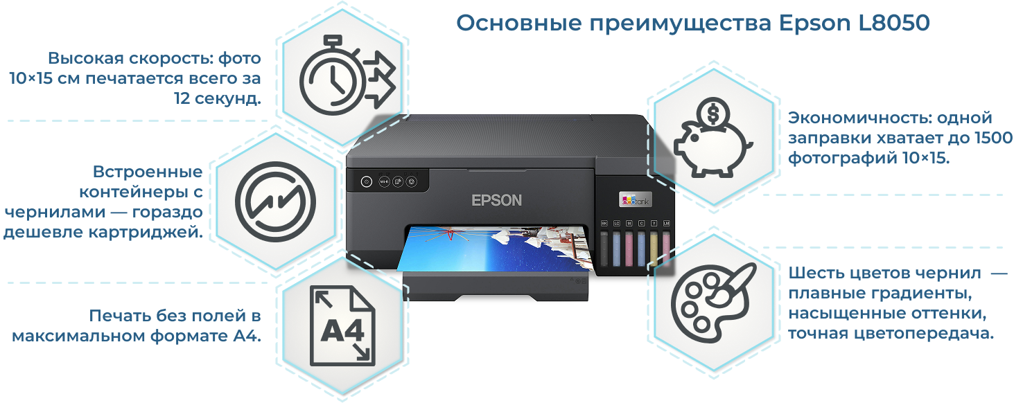 Epson EcoTank L8050 — это идеальное решение для тех, кто ценит качество печати, экономичность и универсальность. Принтер отлично справляется как с домашними задачами, так и с работой в офисе, фотостудии, дизайнерском бюро или небольшом полиграфическом центре, где требуется высокая точность передачи цвета и низкая себестоимость печати. Он подойдет для печати фотографий, рекламных материалов, презентаций и любых творческих проектов.