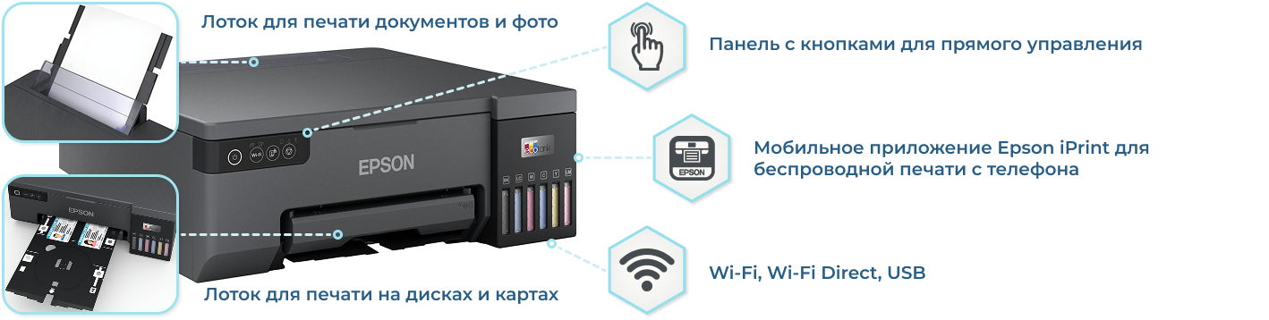 | Типы беспроводного подключения | iPrint, Epson Smart Panel App |